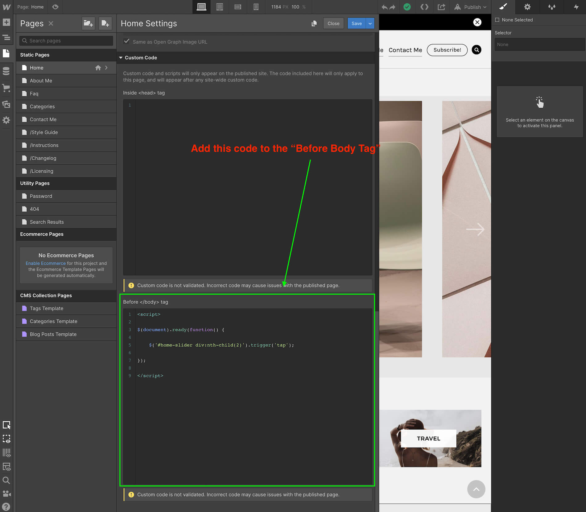 3. Scroll down and copy paste this code on the "Before Body Tag".